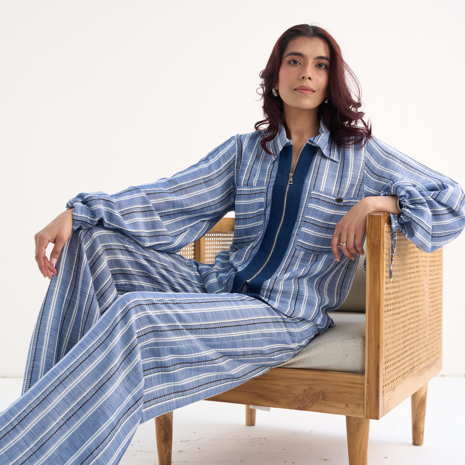Blue Striped Shirt & Pants Co-ord Set